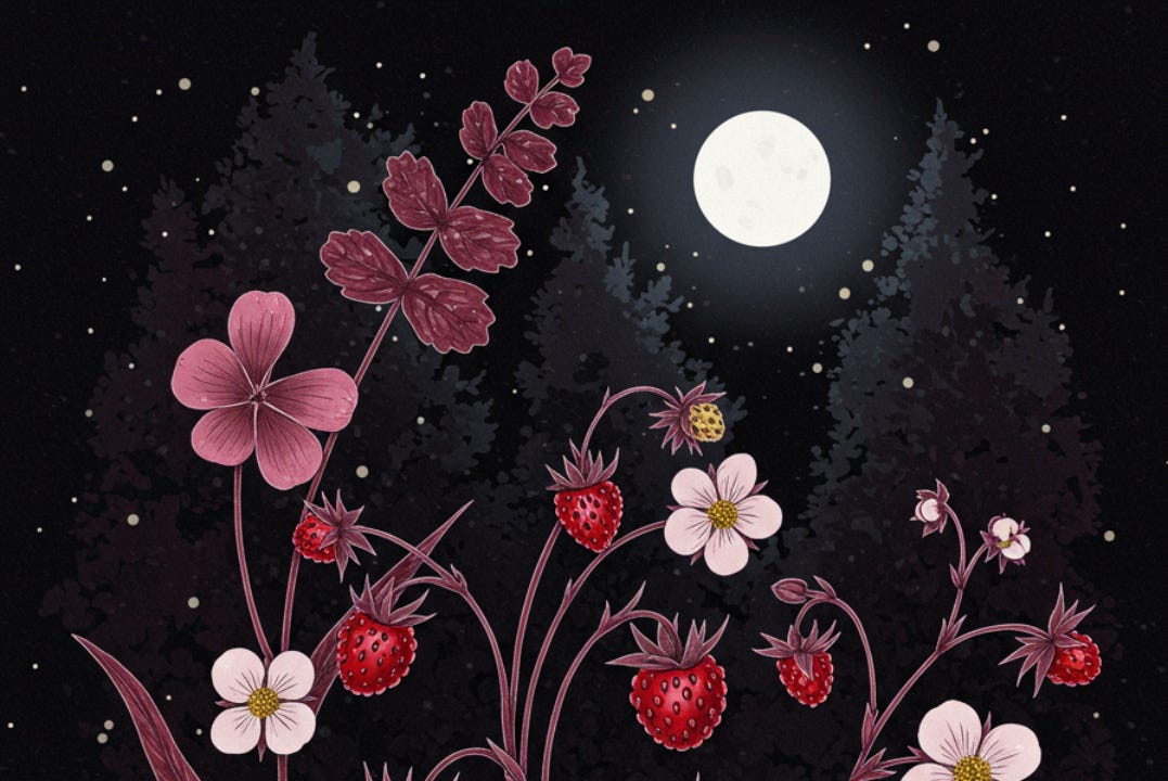First, a little magic: the name “Strawberry Moon” comes from Indigenous traditions, marking the time when wild strawberries ripen. It's a symbol of sweetness after a season of growth—and it arrives just as we step into summer, the season of fullness, fruition, and flowering.
